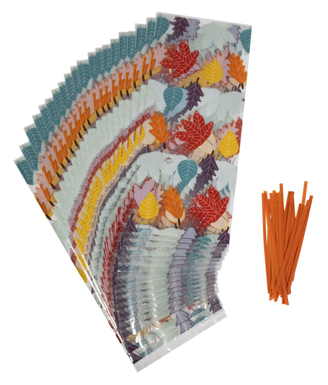 - Treat friends, family and neighbors to a cute fall treat with these Wilton Leaves Fall Treat Bags and Ties. Great for parties, October birthdays or cozy fall showers, these festive fall goodie bags can be filled with popcorn, chocolate-covered pretzels, homemade cookies, brownies, candy, trail mix or even little toys and gifts! Each pack contains 20 bags and 20 ties for easy closing. You can use these autumn treat bags for school parties or for wrapping up party favors for a holiday celebration. Featuring a cute all-over leaves pattern.