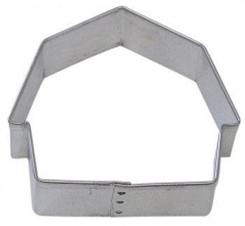 Tinplated Steel Barn 3.25 Cookie Cutter. Hand wash and dry thoroughly before storing.