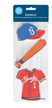 Can’t strike out with baseball treats! This 3 piece cookie cutter set is made of high-quality steel. Includes Bat 4.5", Hat 3.25" and Tee Shirt 3.5". Deep steel sides create crisp defined cuts to hold shape during baking. Great for roll-out cookie dough, fondant and crafts too! Hand wash and dry thoroughly before storing.