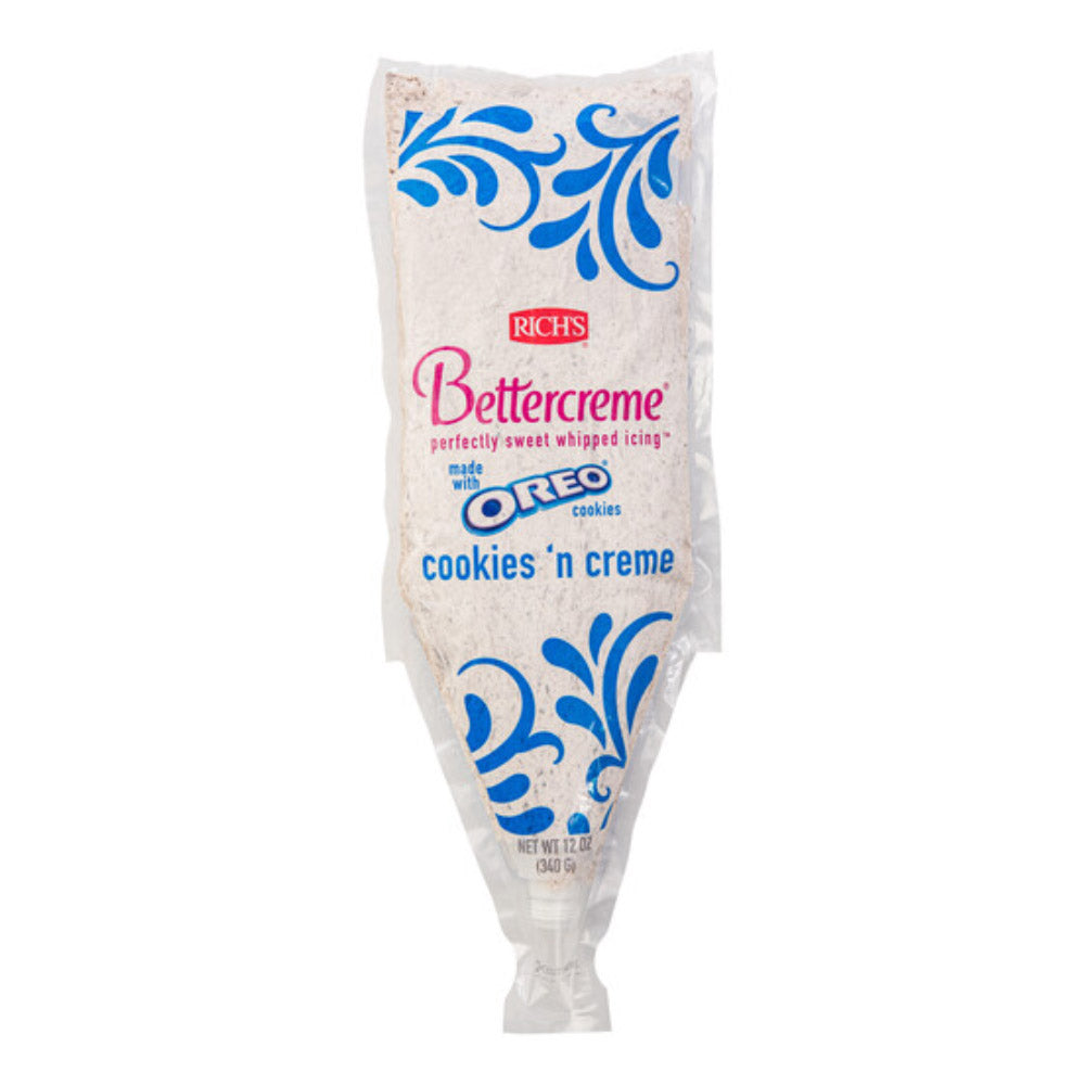 1. OUR BAGS. YOUR TRICKS. Bettercreme's bags with included coupler tip and superior yield allow you to decorate more in less time than pails, saving on labor and waste. Each perfectly portioned bags allows you to decorate one quarter sheet cake, one eight-inch double layer cake, or 12-24 cupcakes.