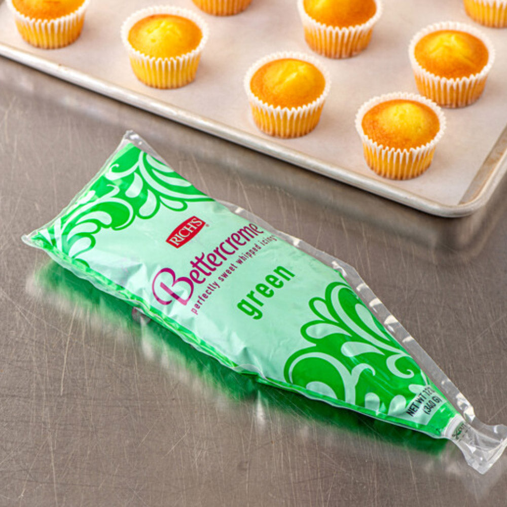1. OUR BAGS. YOUR TRICKS. Bettercreme's bags with included coupler tip and superior yield allow you to decorate more in less time than pails, saving on labor and waste. Each perfectly portioned bags allows you to decorate one quarter sheet cake, one eight-inch double layer cake, or 12-24 cupcakes.
