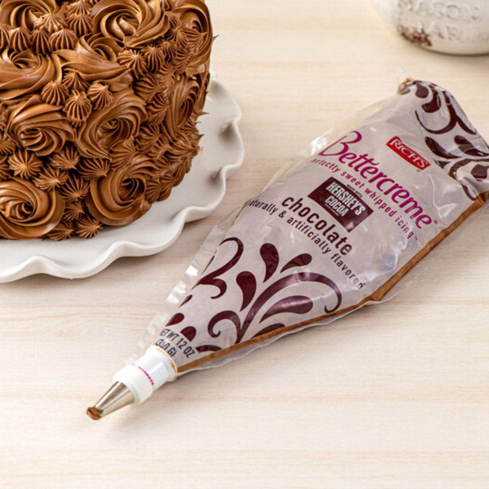 1. OUR BAGS. YOUR TRICKS. Bettercreme's bags with included coupler tip and superior yield allow you to decorate more in less time than pails, saving on labor and waste. Each perfectly portioned bags allows you to decorate one quarter sheet cake, one eight-inch double layer cake, or 12-24 cupcakes.