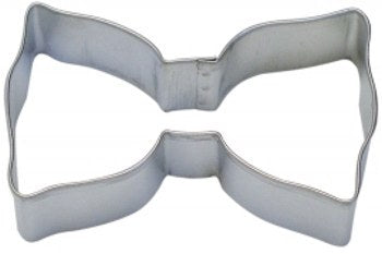 Tinplated Steel 3.5 Bow Tie Cookie Cutter. Hand wash and dry thoroughly before storing.