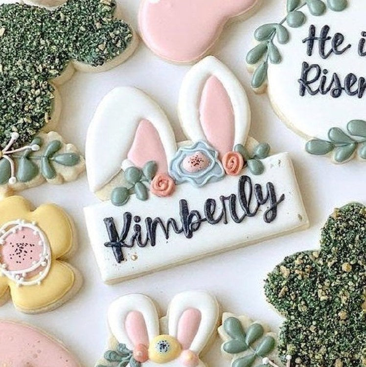 About this product Food Safe PLA 3D printed cookie cutter. All cutters are measured by their longest dimension. Ex: a 4 listing means that the longest dimension on that cutter is 4 . This is almost always a diagonal length Let me know if there is a different size you would like listed. This listing goes from left to right: Bunny Ears Plaque Skinny Banner (left), Bunny Ears Plaque Wide Banner (right). Cutters are not dishwasher safe. Please wash by hand, or the plastic will warp. Product details Made in United States Weight: 1 oz (28.35 g)