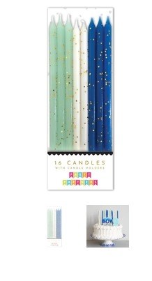 Tall Blue 16 Candle Set Party Partners Count: 16 Candles set with candle holders Size: 4.75 Packaging: Vellum box w insert