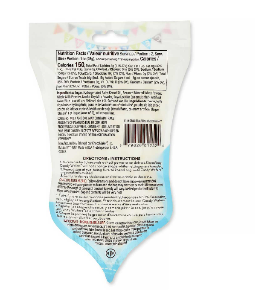 Chocodrizzler Candy Wafers make decorating easy and fun! These convenient microwaveable pouches let you melt candy coating quickly—just heat, drizzle, and decorate with no mess and no extra tools. Perfect for baby shower accents cakes, cookies, cupcakes, cake pops, dipped pretzels, strawberries, and more. The smooth-melting formula ensures a professional finish with rich color and shine, ideal for both home bakers and professionals. Each 2 oz pouch is just the right size for accents, lettering, and decorative drizzles.