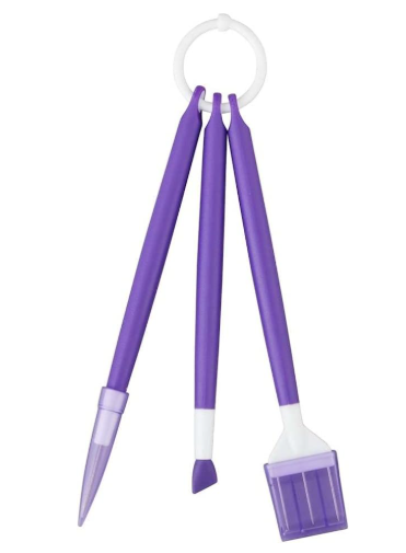 - Includes etching tool, 3-prong comb and silicone scraper; drag, marble, and smooth your cookie icing