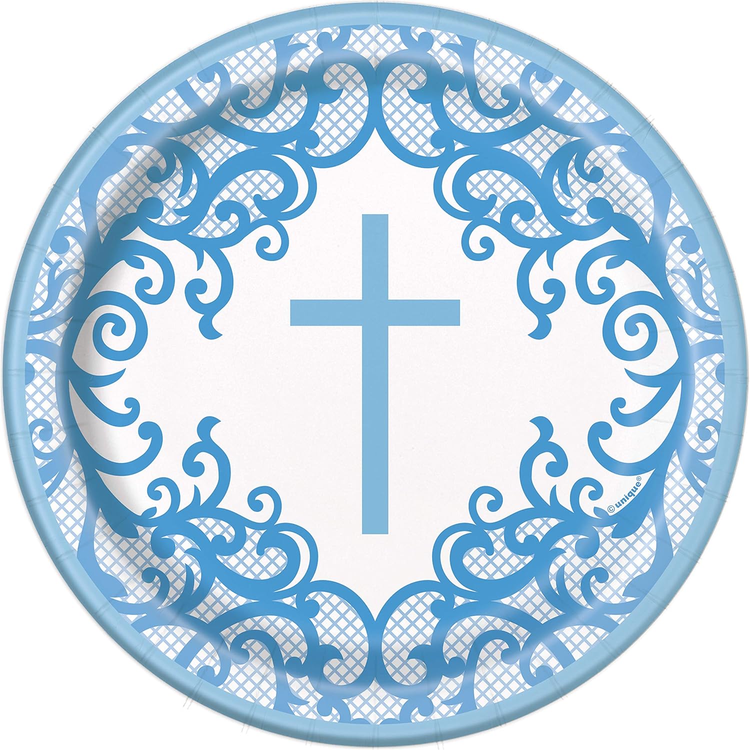 Featuring a stunning fancy blue cross pattern, these round paper plates add a touch of sophistication and charm to any religious event or special occasion, impressing your guests with both style and functionality.