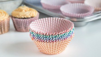 Time to get festive! This set of multi-color candy cane swirl bake cups are sure to take your cupcakes up a notch. This set includes 100 standard size food-safe, fluted paper baking cups, so you can bake and serve tons of cupcakes for your guests. Simply place in a muffin tin and fill with your favorite batter to dress up your cupcakes. Perfect for the holidays!