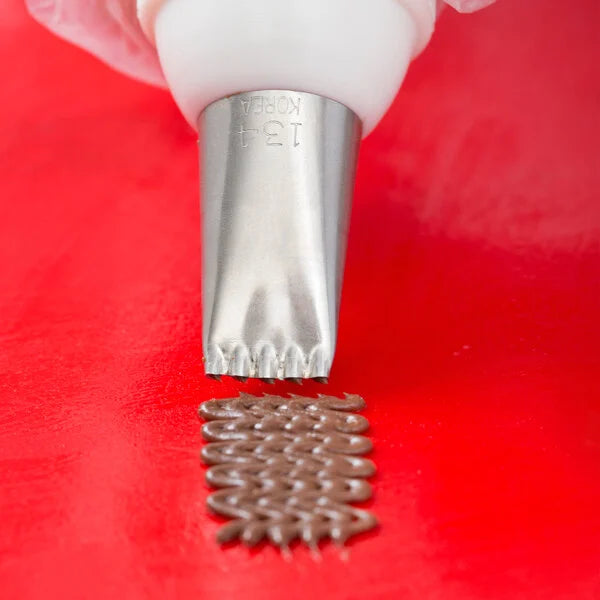 Decorate your cakes, cupcakes, cookies, and pies with this Ateco 134 5-hole pastry tube. Made of durable stainless steel, this tube is rust-resistant and designed to withstand repeated use without bending out of shape. Featuring a 5-hole tip, this tube is perfect for piping rows of strings, scallops, outlines, and other special effects, such as hair!
