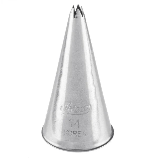 Easily add lightly grooved patterned icing to your cakes, cupcakes, pies, and more with this Ateco 14 open star pastry tube. Made of durable stainless steel, this tube is rust-resistant and designed to withstand repeated use without bending out of shape. Featuring an open star tip, you can create shells, stars, fleur-de-lis, rosettes, and flowers. The open star design produces a subtle texture great for a soft presentation.