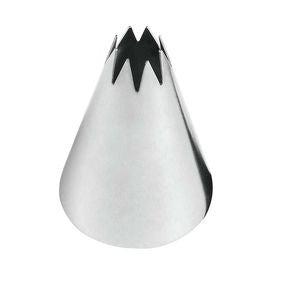 Deep open star tip for piping stars, shells, rosettes, baby's breath, puffs, zigzags, stripes, scrolls, fleurs de lis, drops flowers, garlands and ropes May be used with a standard coupler Dishwasher-safe stainless steel Mad in South Korea