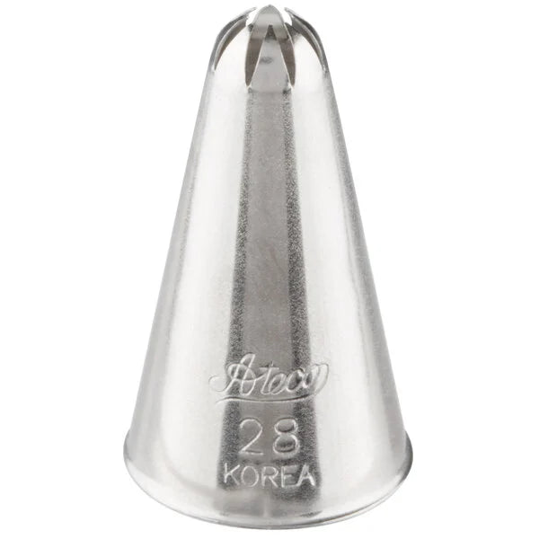 Create deeply-grooved icing patterns and borders on your cakes, cupcakes, pies, and more with this Ateco 28 closed star pastry tube. Made of durable stainless steel, this tube is rust-resistant and designed to withstand repeated use without bending out of shape.