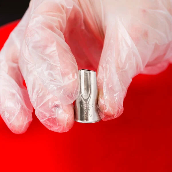 All your tasty treats will look professionally delicious with this Ateco 97 3/8" wavy petal pastry tube! For any and all occasions, this pastry tube will create the perfect wavy flower petals and borders to top your edible creations. Made of durable stainless steel, this tube is rust-resistant and designed to withstand repeated use without bending out of shape.