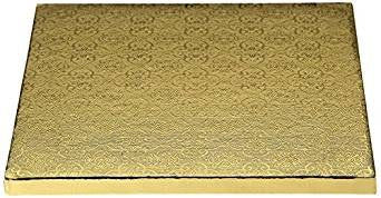 Perfect for displaying your cake creations. They are sturdy enough to accomadate heavier cakes for transporting and displaying. All boards are wraped in either silver, gold, black or white decorative foils. Boards measure 1 2 thick and presents a perfect edge for trimming with ribbons and pearl beading. They are available in rounds and squares. Grease resistant and strong. Foil patterns may vary.