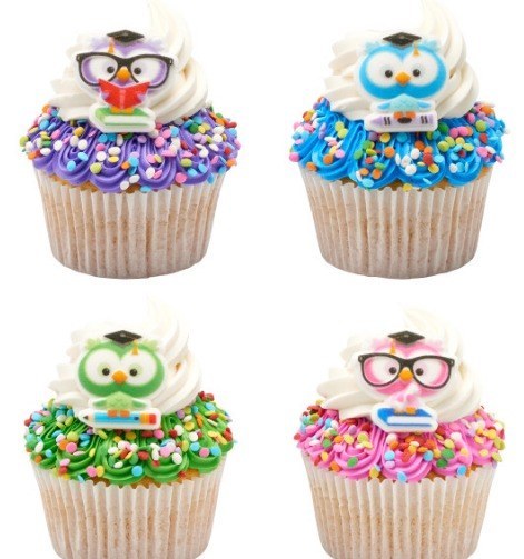 Edible Decorations Colorful Graduation Owls 1.75in 3-Count