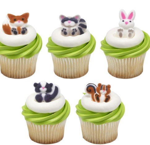 nvite this adorable gang of bandits to your next celebration These cuddly party-pals add a dose of colorful cuteness to your cake creation. Assortment includes foxes, skunks, rabbits, chipmunks, and raccoons. Made of finely granulated sugar molded into shapes and painted with edible food color. Dimensions: SKUNK: 1.35 x 1.25 x 0.3 inches FOX: 1.4 x 1.35 x 0.3 inches BUNNY: 1.7 x 1.1 x 0.3 inches CHIPMUNK: 1.4 x 1.1 x 0.3 inches RACCOON: 1.4 x 1.4 x 0.3 inches