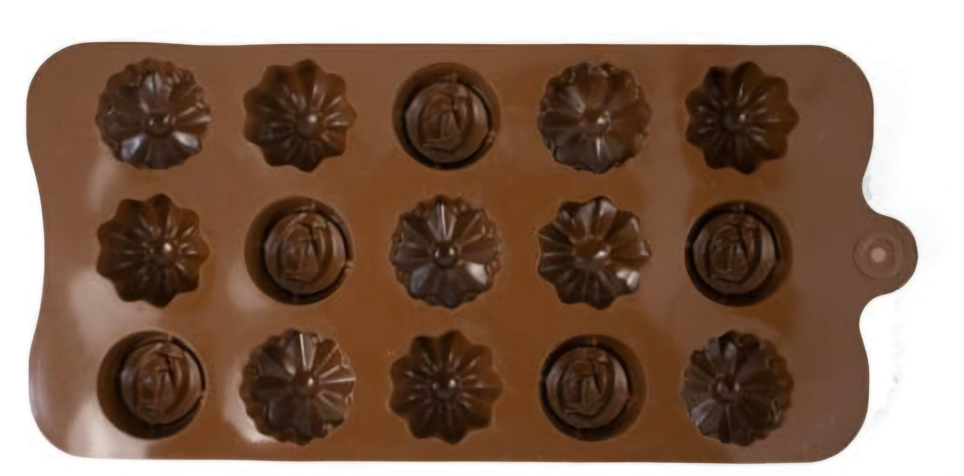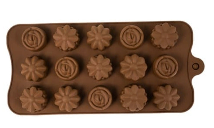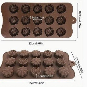 Create beautiful chocolates, gummies, or soaps with this flexible silicone mold featuring 15 flower and swirl cavities. Perfect for candy making, chocolate melts, fondant, and baking projects.