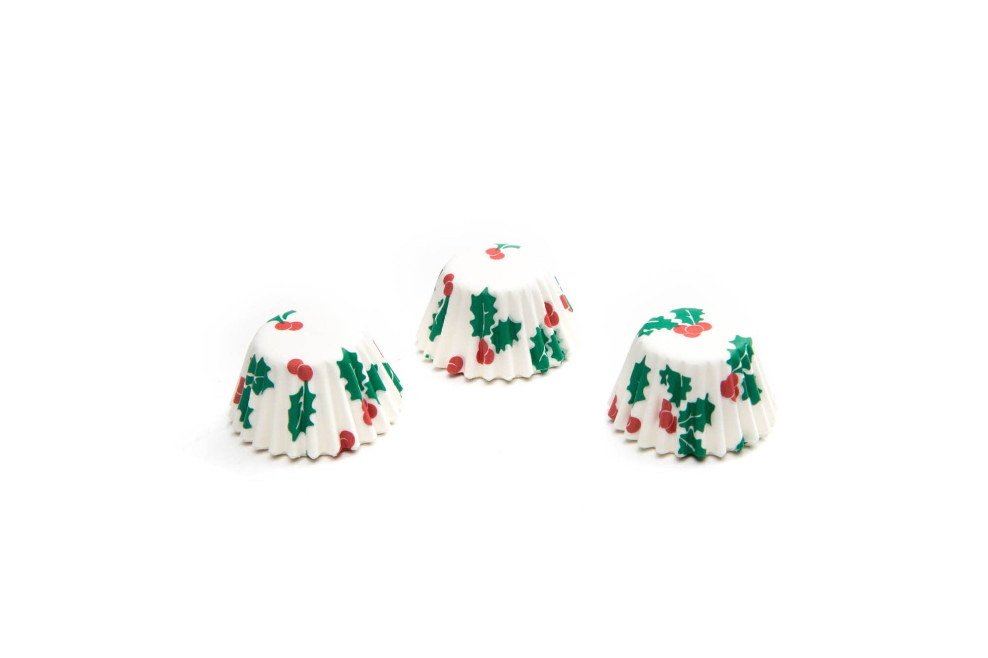 Time to get festive! These Christmas bake cups are sure to take your cupcakes up a notch this holiday season. This set includes 100 petit four food-safe, fluted paper baking cups, so you can bake and serve tons of small pastries and appetizers for your guests. Simply place in a muffin tin and fill with your favorite batter to dress up your desserts.Package Type: Container, plastic