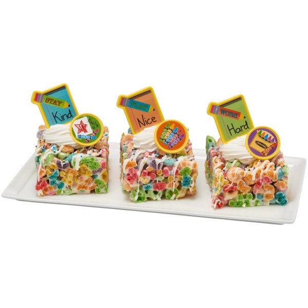 Product Details Work Hard. Play Nice. Stay Kind. All great words to remember and these DecoPics are a perfect addition to your display for back to school time. Great for cake and cupcakes pics to add to an overall theme. Made with food-safe plastic.