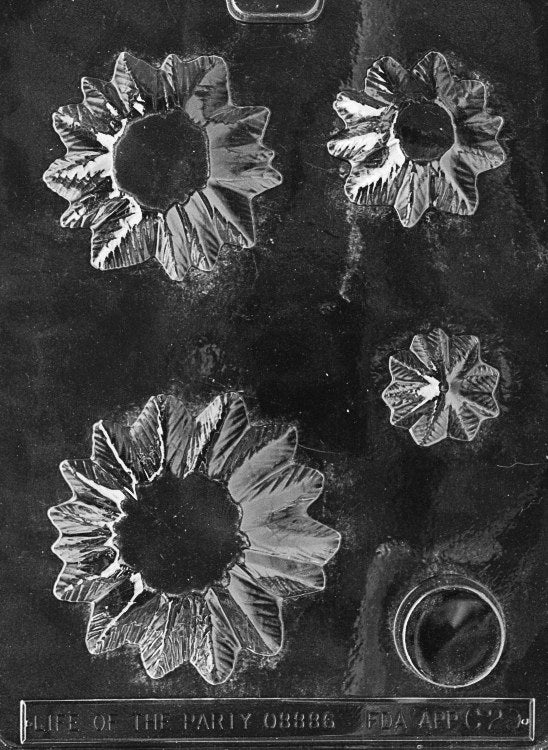 Dim: LARGEST 3 3 4X 3 4 Weight: 6 Make sweet and tasty treats with our thousands of chocolate molds. Create lollipops,chocolates, or bite sized pieces to decorate cakes, cupcakes, and cookies. Use chocolate wafers to make quick and easy chocolates for your next treats. Cool melted Chocolate coating to 92 98 degrees F. The molds should be at room temperatureand free from moisture. Pour melted coating into Chocolate molds. Tap molds on the table several times to remove air bubbles. After depositing, place molds in a cooling tunnel at 45 55 degrees F or in a refrigerator until set. Mold will release when turned over and tapped. If not, return to the refrigerator for a few more minutes. Remember, larger molds will take longer