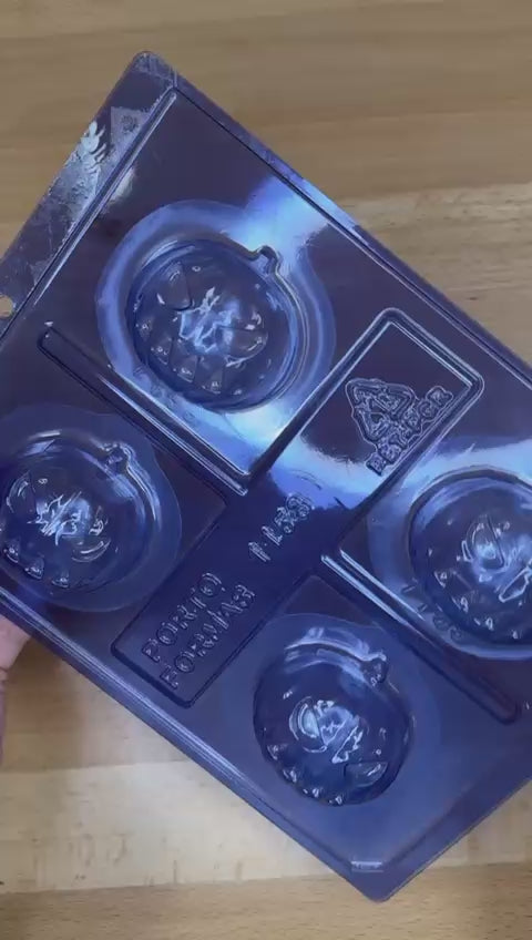Create spooky Halloween treats with this professional-quality Porto Formas 3-part chocolate mold. Featuring a detailed jack-o’-lantern face design, this mold allows you to make perfectly shaped, hollow chocolate pumpkins that can be filled with candy, sprinkles, or other surprises.