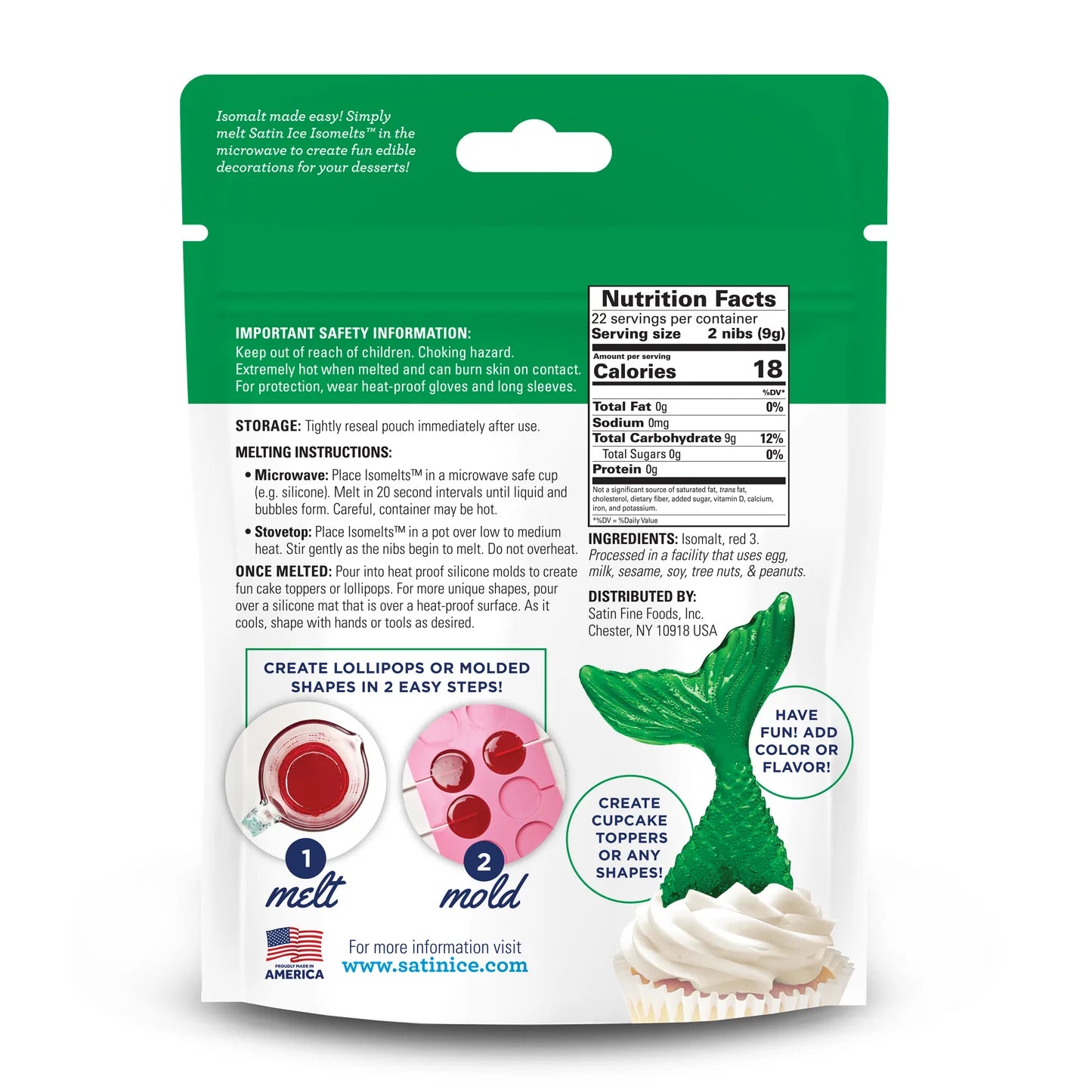 Isomalt made easy! Simply melt Satin Ice Isomelts™ in the microwave to create fun edible decorations for your desserts. These 100% pre-cooked & pre-colored isomalt nibs are perfect for pouring into molds or shaping unique creations.