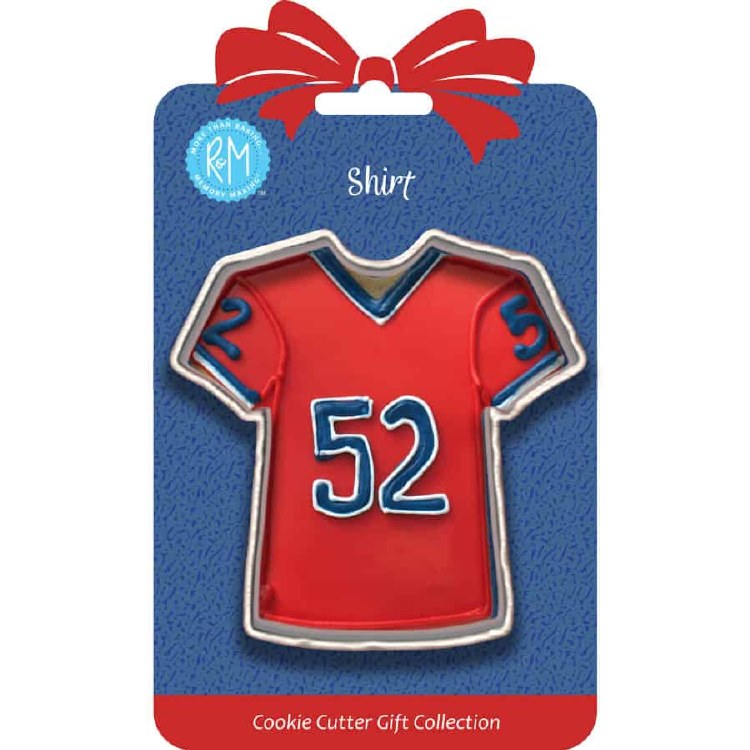 Shirt 3.5 cookie cutter is made of high-quality tinplated steel. Packaged on a colorful card featuring cookie designs on the front and back for decorating inspiration. Makes a great gift for special occasions with space on the back for personalized gift greetings. Hand wash and dry thoroughly before and after each use.