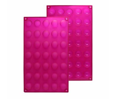 Molds are safe in a conventional oven, microwave oven, freezer, and dishwasher, and temperature safe from -40 C 230 C -40 F 446 F. 2-Pack Silicone molds containing small, round flat cavities perfect for candies, gummies, chocolates, caramels, entremets, and more 35 cavities per sheet Sheet measures 17.5 cm x 29.5 cm and 1.5 cm depth (7 x 12 x .6 ) Volume is approximately 5ml per cavity User-friendly and easy to remove and clean