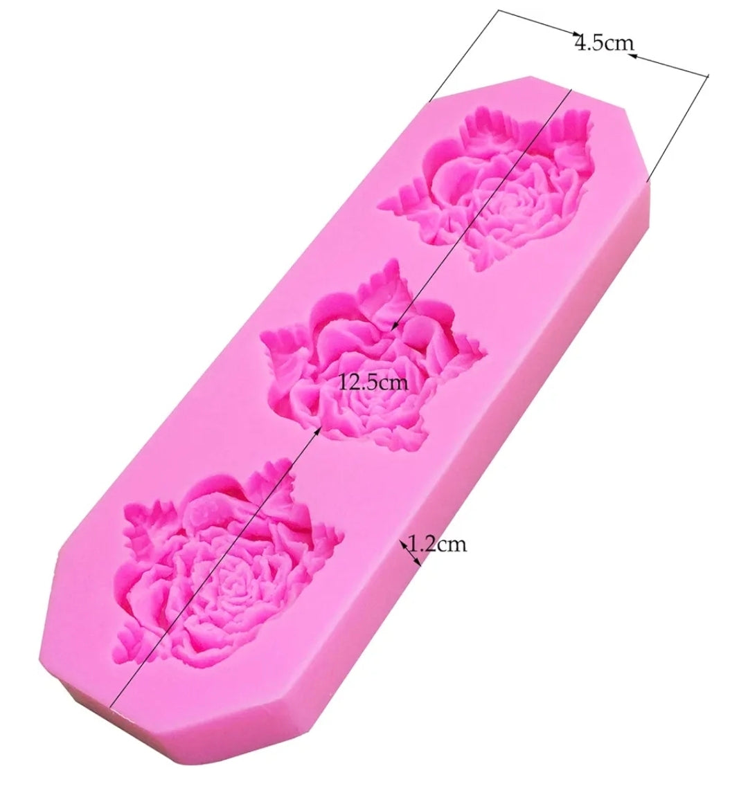 Make elegant rose decorations with this 3-cavity silicone mold. Perfect for fondant cake toppers, chocolate, candy melts, gum paste, soap, and resin projects. Flexible, food-safe, and easy to clean.
