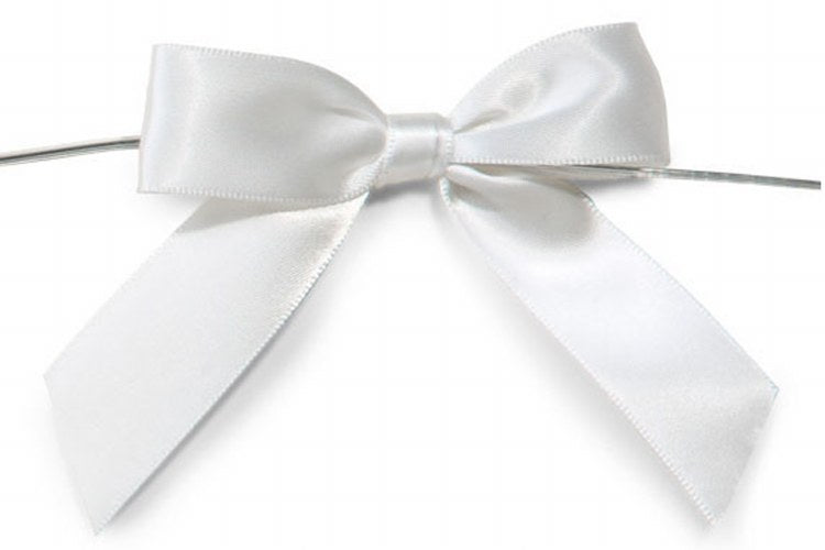 SMALL WHITE BOWS WITH CLEAR TWIST TIES 10PK