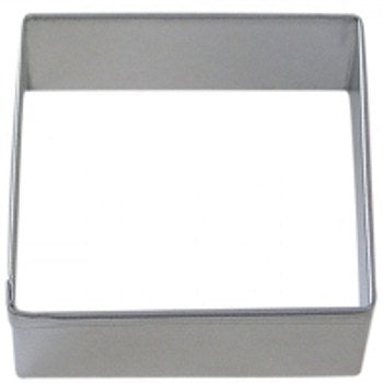 Tinplated Steel Square 2.5 Cookie Cutter. Hand wash and dry thoroughly before storing.