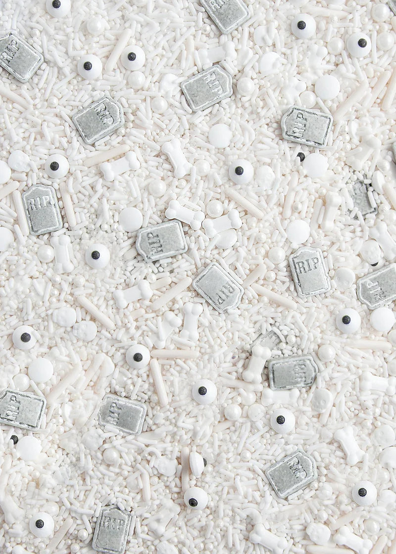 Let your spooky baker within come alive with Bag of Bones Sprinkle Medley! Add a bone-chilling sight to your desserts - you are sure to have some skele-FUN with this premium Halloween sprinkle medley 💀