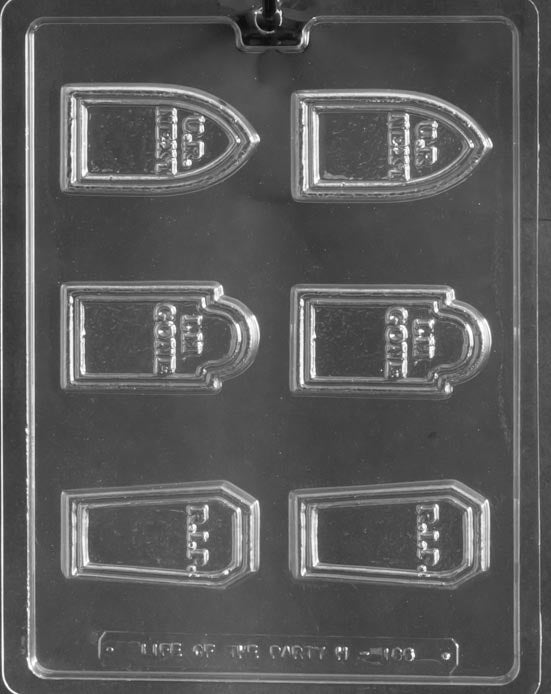 Halloween Chocolate Molds Dim: 1 1 2 x 1 1 8 x 1 4 deep Weight: .14 oz. Make sweet and tasty treats with our thousands of chocolate molds. Create lollipops,chocolates, or bite sized pieces to decorate cakes, cupcakes, and cookies. Use chocolate wafers to make quick and easy chocolates for your next treats. Cool melted Chocolate coating to 92 98 degrees F. The molds should be at room temperatureand free from moisture. Pour melted coating into Chocolate molds. Tap molds on the table several times to remove air bubbles. After depositing, place molds in a cooling tunnel at 45 55 degrees F or in a refrigerator until set. Mold will release when turned over and tapped. If not, return to the refrigerator for a few more minutes. Remember, larger molds will take longer