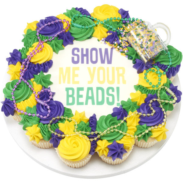 This all-in-one bundle includes three traditional Mardi Gras sanding sugars in purple, green, and yellow, plus festive assorted Mardi Gras beads and a classic king cake baby to complete the tradition. It is perfect for decorating king cakes, cupcakes, cookies, and more while adding a fun party element to your celebration.