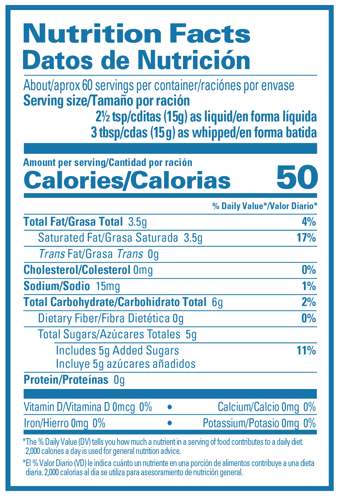 WATER, SUGAR, HYDROGENATED PALM KERNEL OIL, DEXTROSE, CORN SYRUP, CONTAINS LESS THAN 2% OF THE FOLLOWING: SODIUM CASEINATE (A MILK DERIVATIVE), TO PRESERVE FRESHNESS (SODIUM BENZOATE, POTASSIUM SORBATE), CARBOHYDRATE GUM, POLYSORBATE 60, ARTIFICIAL FLAVOR, SALT, SOY PROTEIN ISOLATE, POLYGLYCEROL ESTERS OF FATTY ACIDS, MONO AND DIGLYCERIDES, SODIUM CITRATE, DISODIUM PHOSPHATE, SOY LECITHIN, XANTHAN GUM.