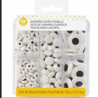 Decorate cakes, cookies, cupcakes and more with this fun assortment of candy eyeballs Small, medium and large candy eyeballs are perfect for Halloween treats, birthday cupcakes or giving any treat a fun personality Use edible eyeballs for cupcakes, cookies, cakes and more mix and match sizes to create funny faces The small candy eyes are great for cake pops and cookies the medium size candy eyes are good for cupcakes and brownies the large size is perfect for larger treats and cakes Candies come in a divided tackle box, so you can use one at a time or mix them together for a fun look when you're done, lid closes for easy storage Sprinkles mix includes: small black and white candy eyeballs, medium black and white candy eyeballs, large black and white candy eyeballs Net weight: 2.75 oz. (78 g) Contains soy