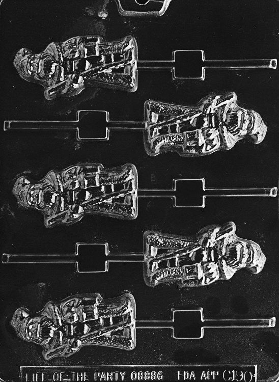 Dim: 3 X 1 1 2x1 2 Weight: .75 Make sweet and tasty treats with our thousands of chocolate molds. Create lollipops,chocolates, or bite sized pieces to decorate cakes, cupcakes, and cookies. Use chocolate wafers to make quick and easy chocolates for your next treats. Cool melted Chocolate coating to 92 98 degrees F. The molds should be at room temperatureand free from moisture. Pour melted coating into Chocolate molds. Tap molds on the table several times to remove air bubbles. After depositing, place molds in a cooling tunnel at 45 55 degrees F or in a refrigerator until set. Mold will release when turned over and tapped. If not, return to the refrigerator for a few more minutes. Remember, larger molds will take longer