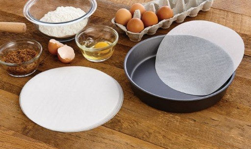 Mrs. Anderson's Non-Stick Parchment Cake Rounds keep baked goods from sticking without greasing baking pans or the use of oils Made from professional-quality 38gsm-thick paper from natural white wood pulp with nonstick silicone coating for quick release of food chlorine free Baked goods won't stick no greasing or oils necessary safe for use in the freezer, microwave, and oven (to 450-degrees Fahrenheit) Ideal for baking cakes, pastries, and breads Includes 36 pre-cut rounds fits standard 10-inch round baking pans single use and disposable for easy cleanup